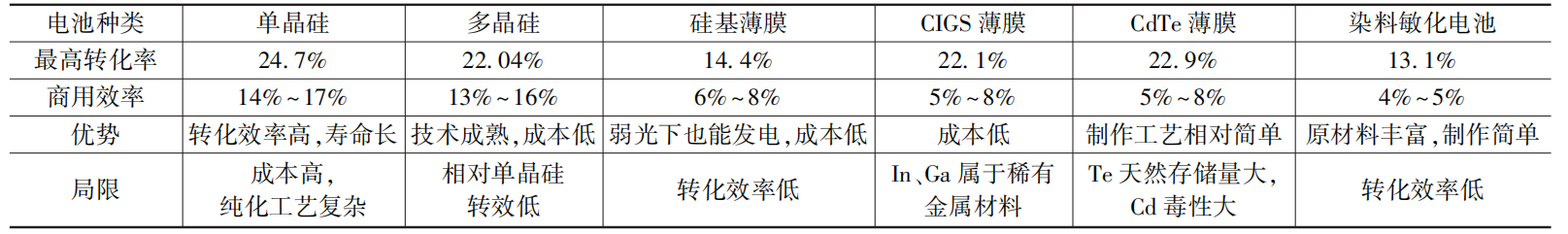 硅系太阳能电池的问世,是光伏技术得以应用的起点。这种电池以其卓*的效率和稳定性,迅速成为市场的主流选择。它们通常采用硅片作为材料,其转换效率相对较高,但由于成本较高且需要较大面积的太阳能面板,因此,更适用于大型太阳能电站或工业应用中,如表1所示。
